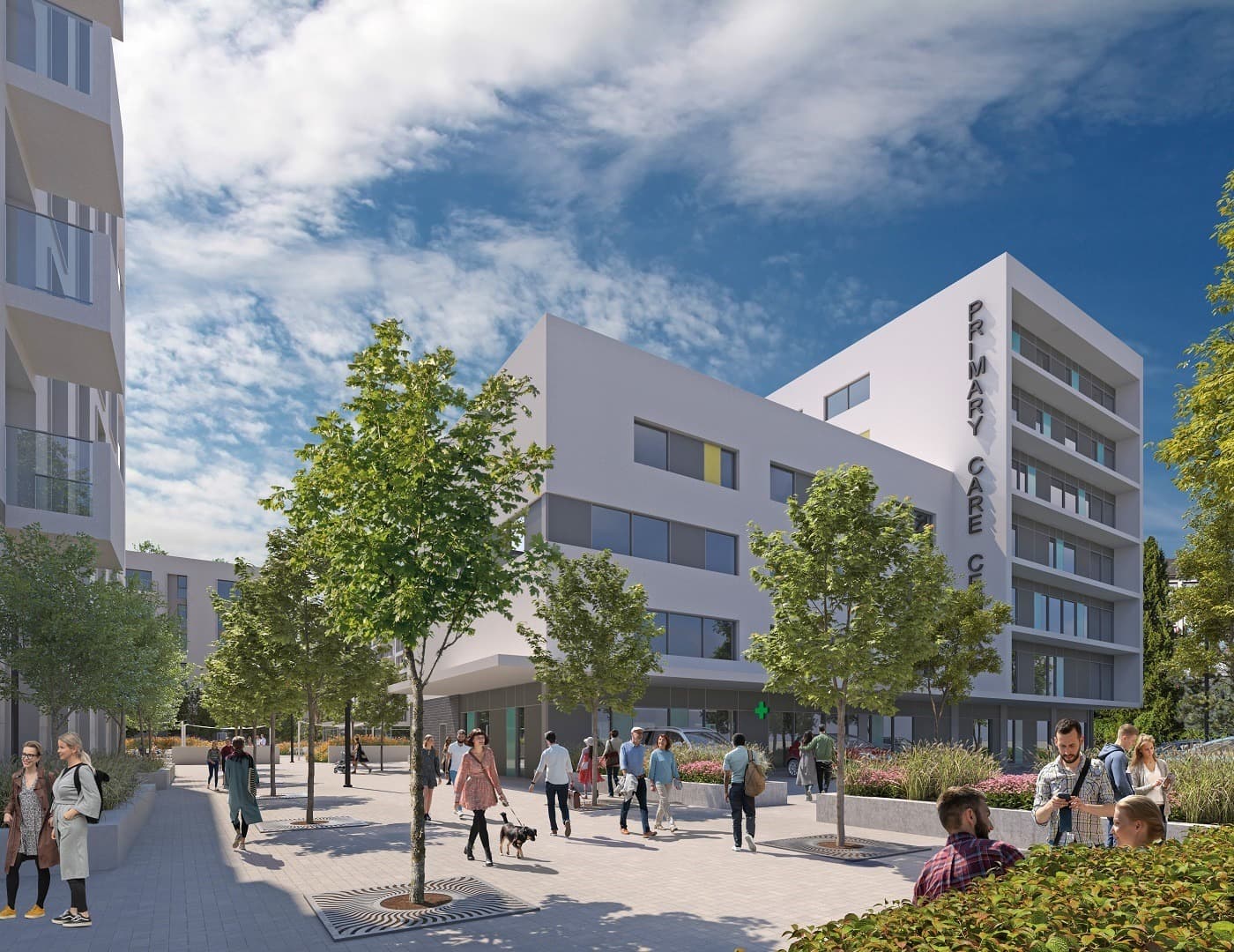 Conceived as a new quarter, incorporating a series of character areas that provide new urban spaces, residential courtyards, parkland and a town square addressed by a 15-storey landmark residential tower.