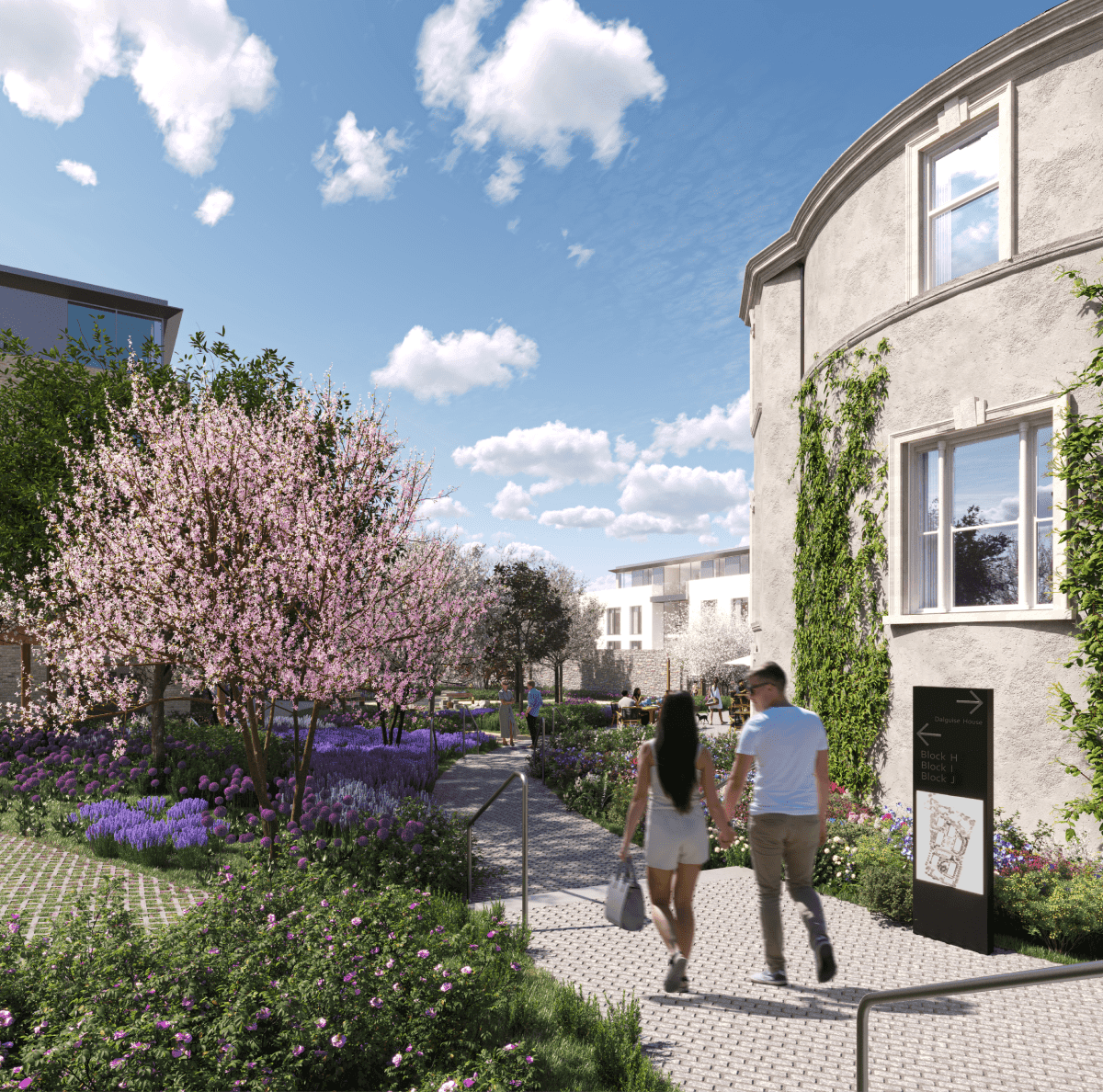 The result is a scheme that represents the best of apartment living with a woodland setting, a formal courtyard at the historic house, a walled garden area and a mews at the south of the site.