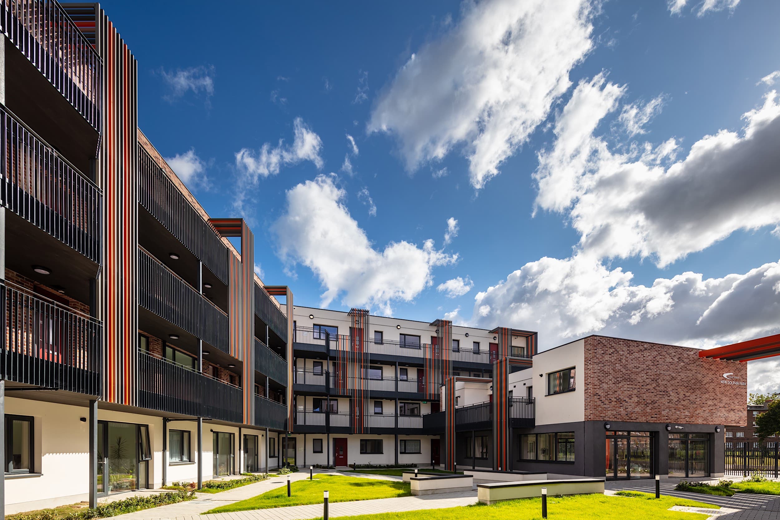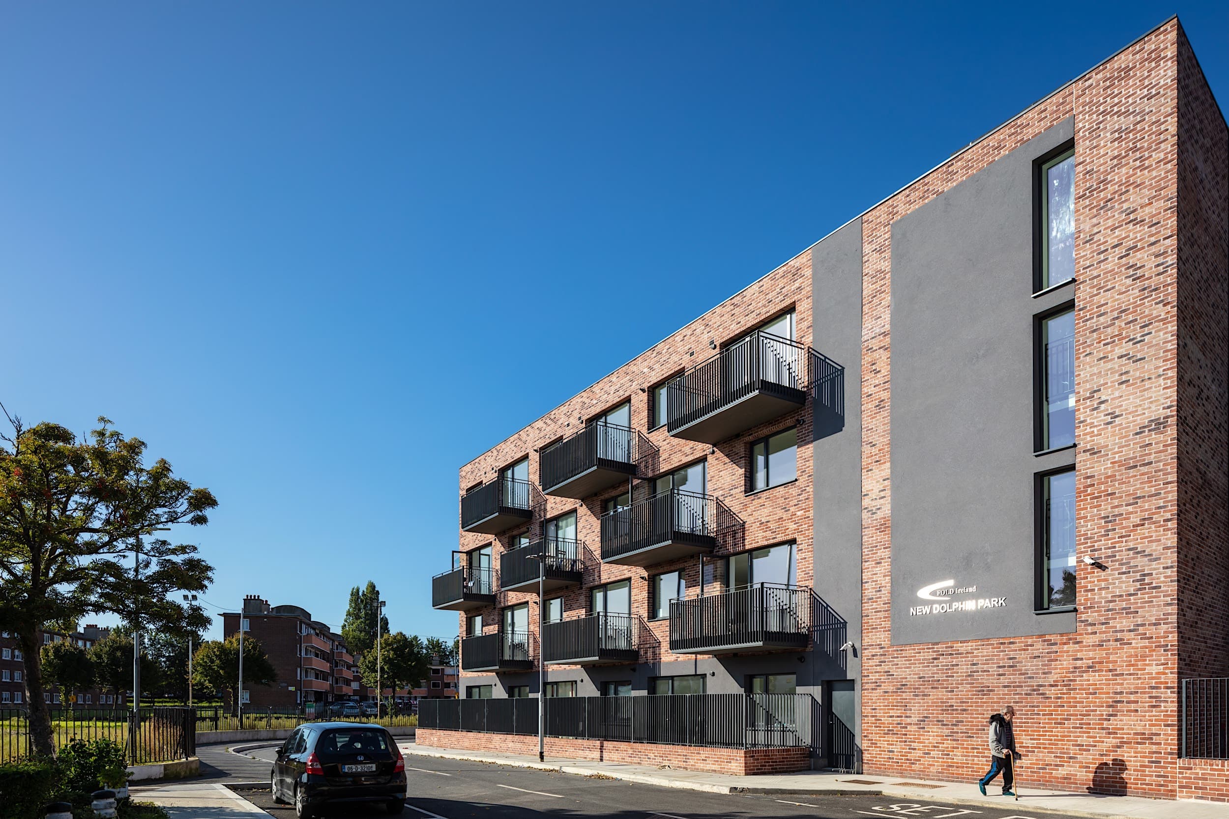 Fold Housing is a community focused housing development comprised of 43 sheltered apartments wrapped around a landscaped courtyard. The project has a community centre on the ground floor and ancillary accommodation to serve the wider community in Rialto, Dublin.
