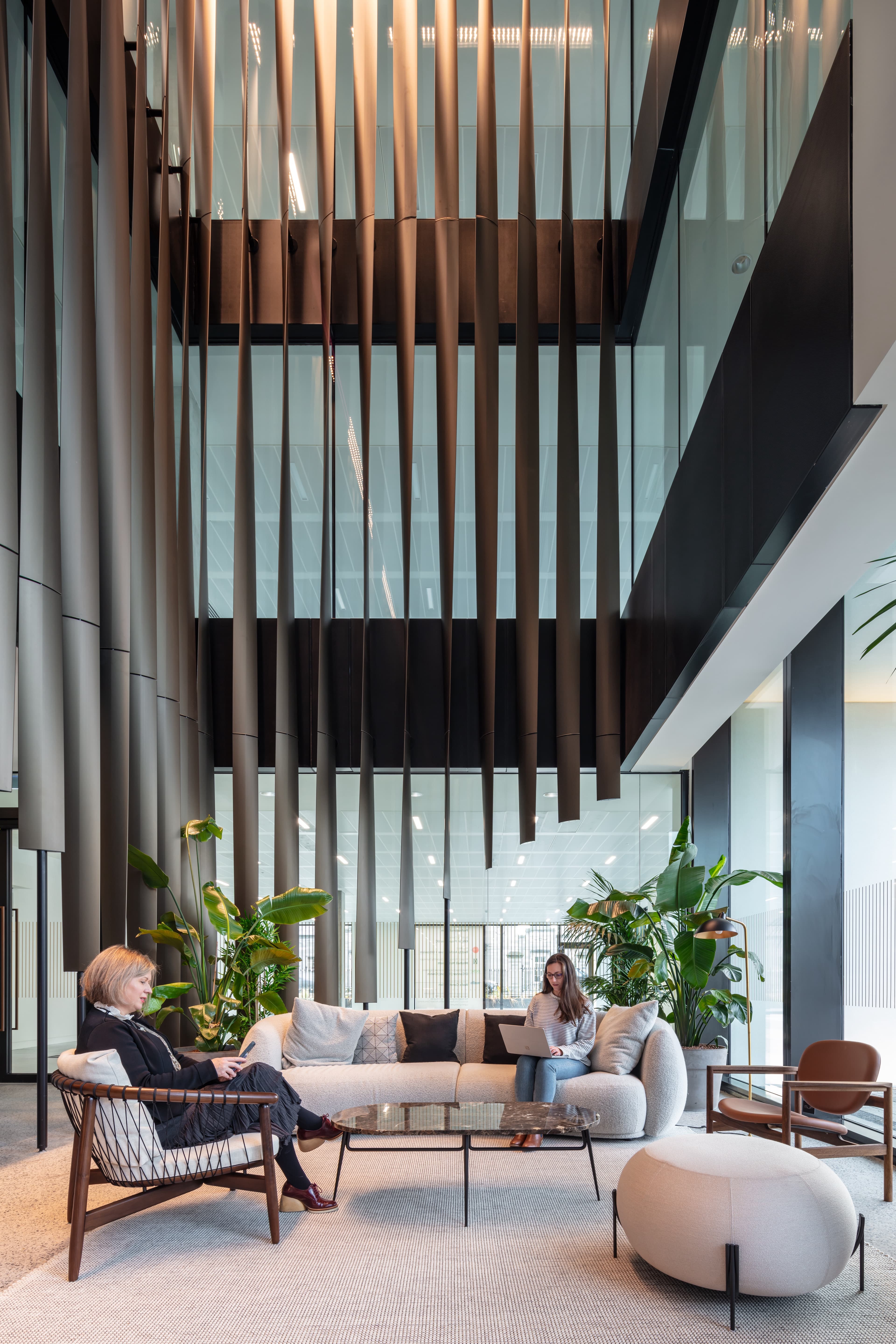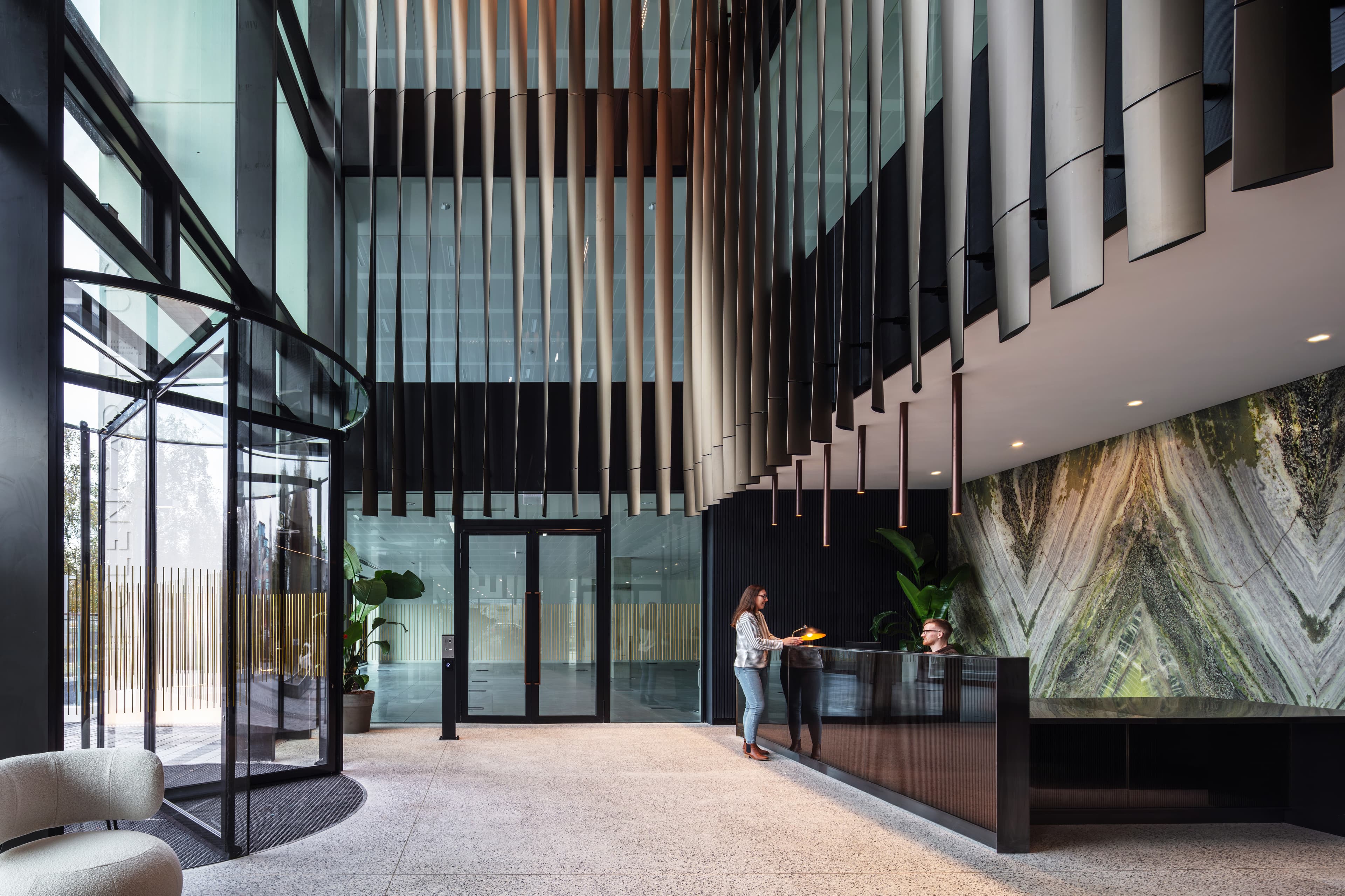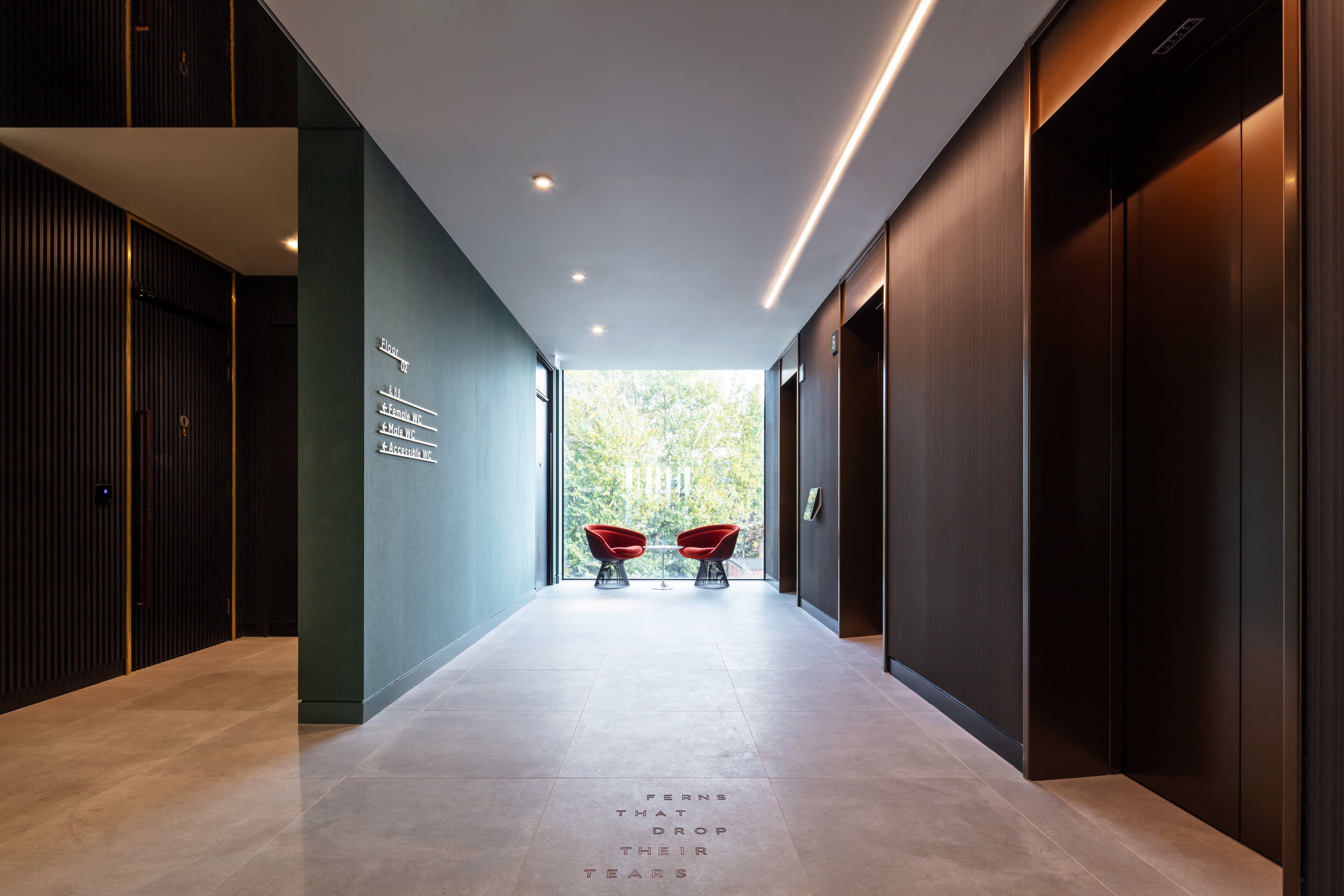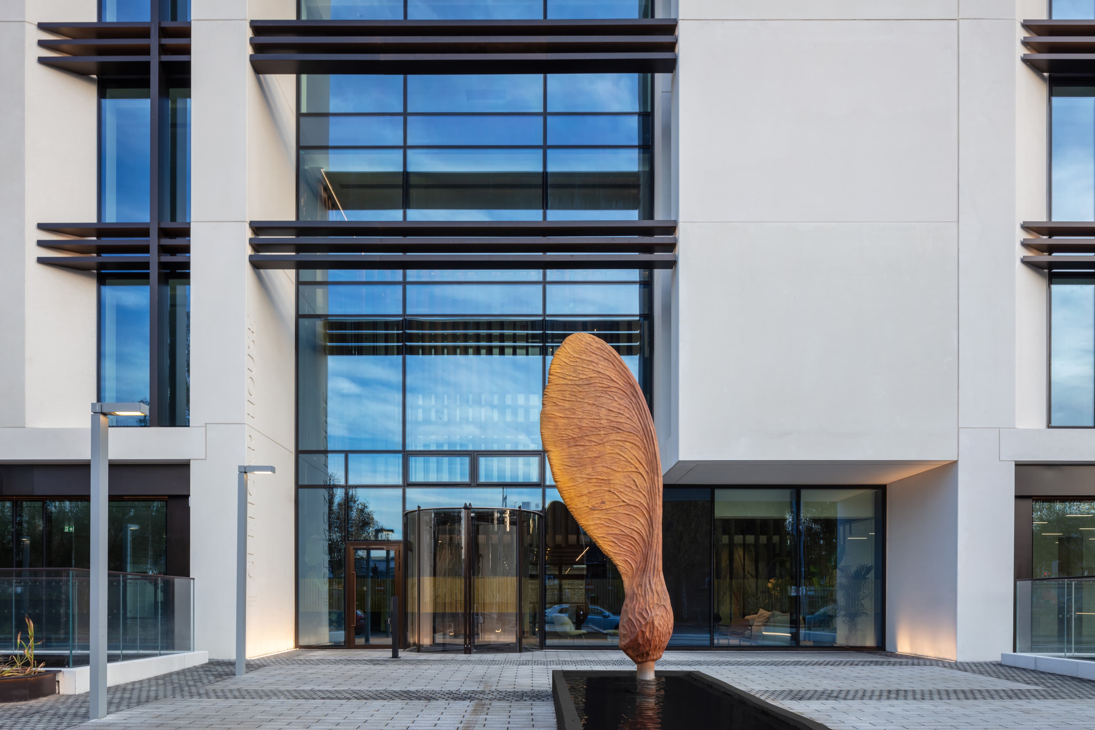 Themes inspired by nature and Glencar Waterfall, a place which is of personal significance to the Mahony family and Killeen Group, are used throughout the interior with anodized fins cascading in a three storey atrium, and locally sourced Connemara marble used with the reception.