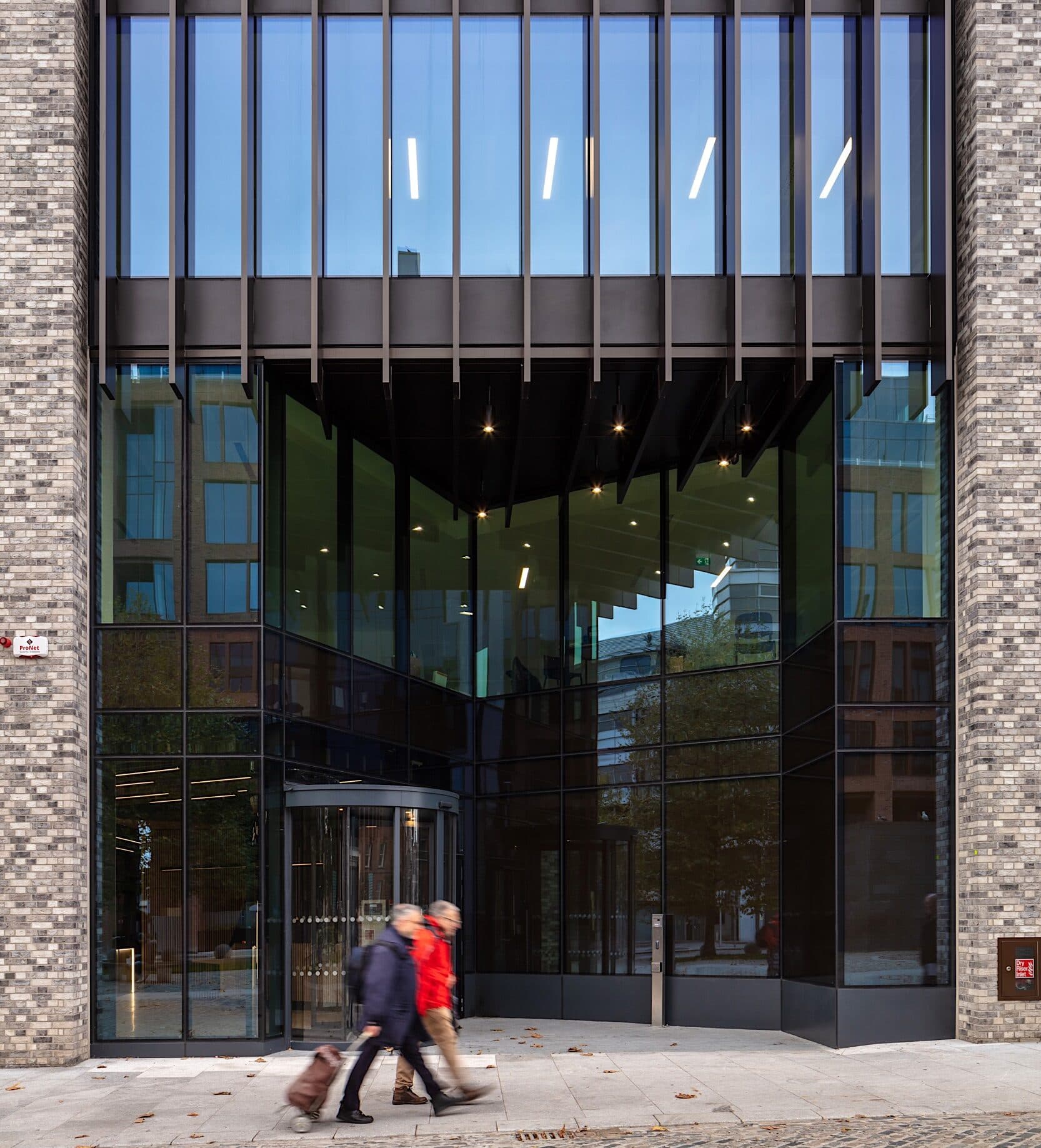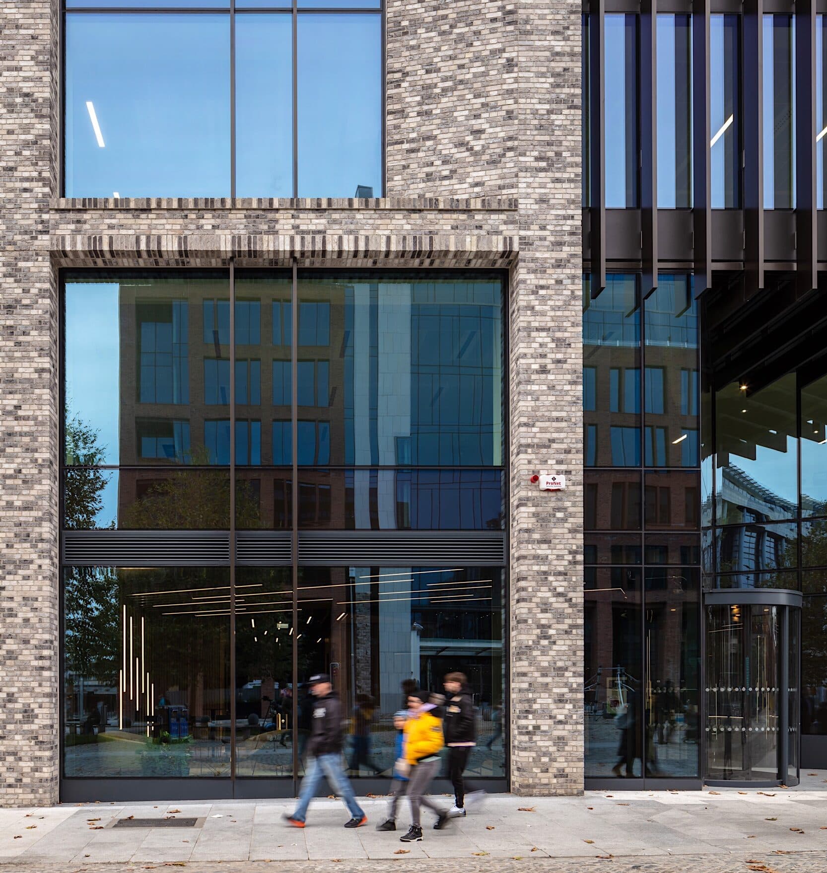 The building is modulated on four sides through the alternating use of brick and the vertical brise soleil steel panels in front of the glazing. The design concept successfully negotiates the complex relationship between new and old, referencing the historic and the contemporary. This is most clearly demonstrated by the brick façade which is both sensitive to its context and visually striking.