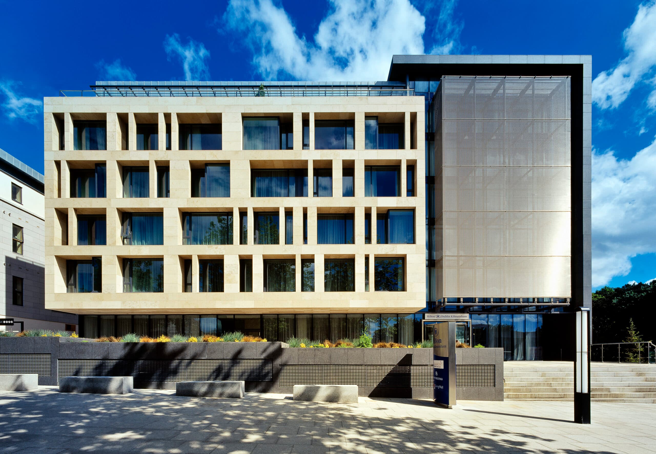 New landscaping outside the hotel creates a high-quality urban space, in use by day and night as an external seating and dining area for hotel users and tourists visiting the nearby national monuments. The innovative expression of natural stone onto Kilmainham Road gives the building its own sense of importance and adds weight and gravity to the overall architectural composition.