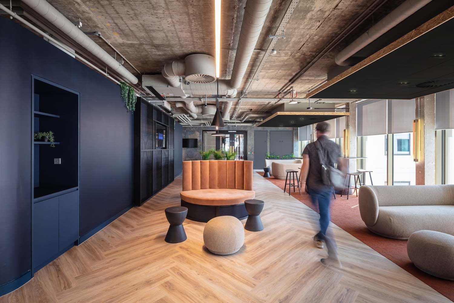 An activity-based working environment designed to accommodate 150 Sandvik staff at 50% occupancy within 1,200 sqm of office space at Dockline, Dublin 1.