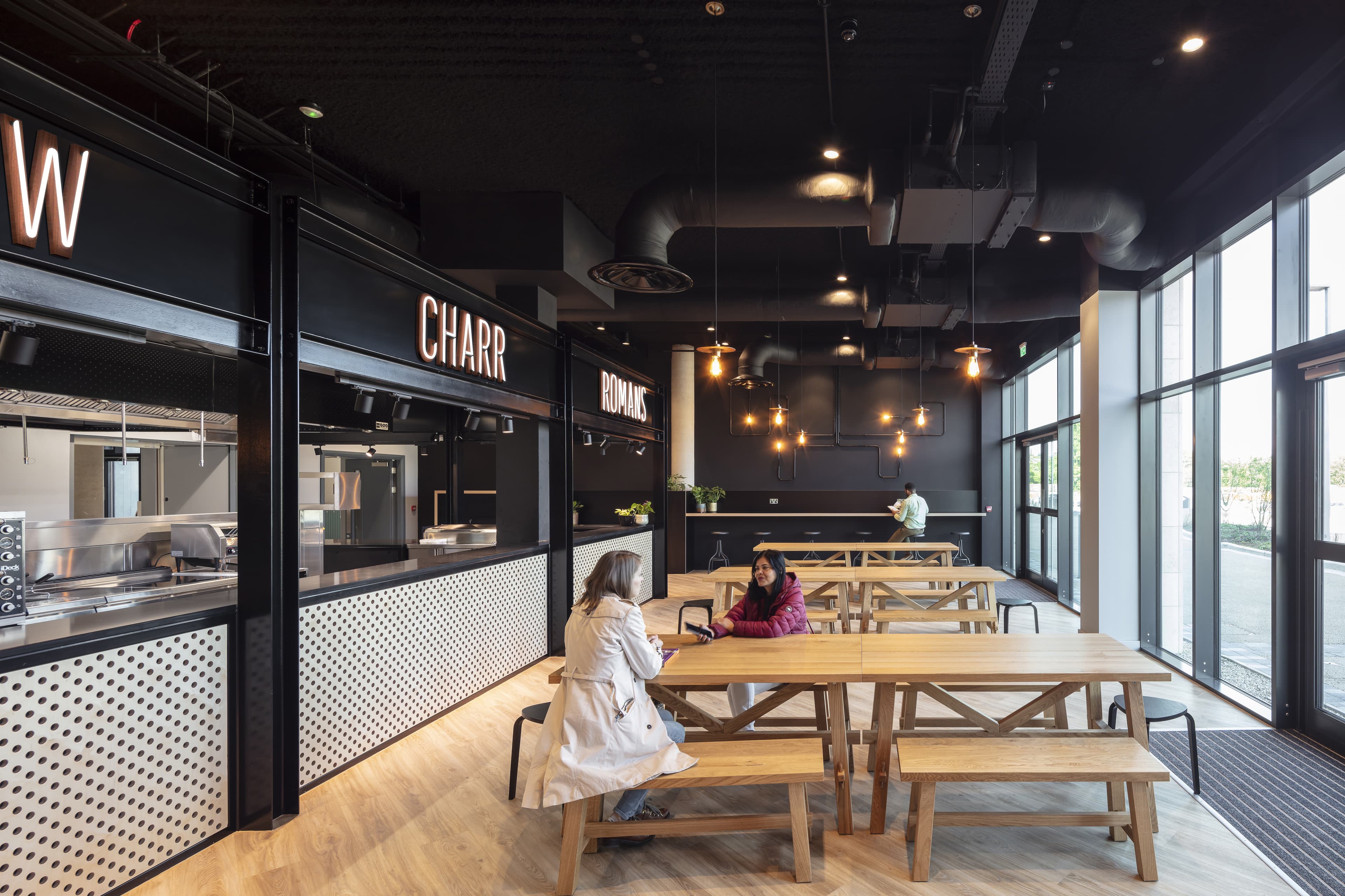 A universal catering equipment solution was incorporated into the design of the kiosks to accommodate flexibility of use. This approach allowed for easy rebranding and changes in food offerings, from burritos to sushi to pastries.