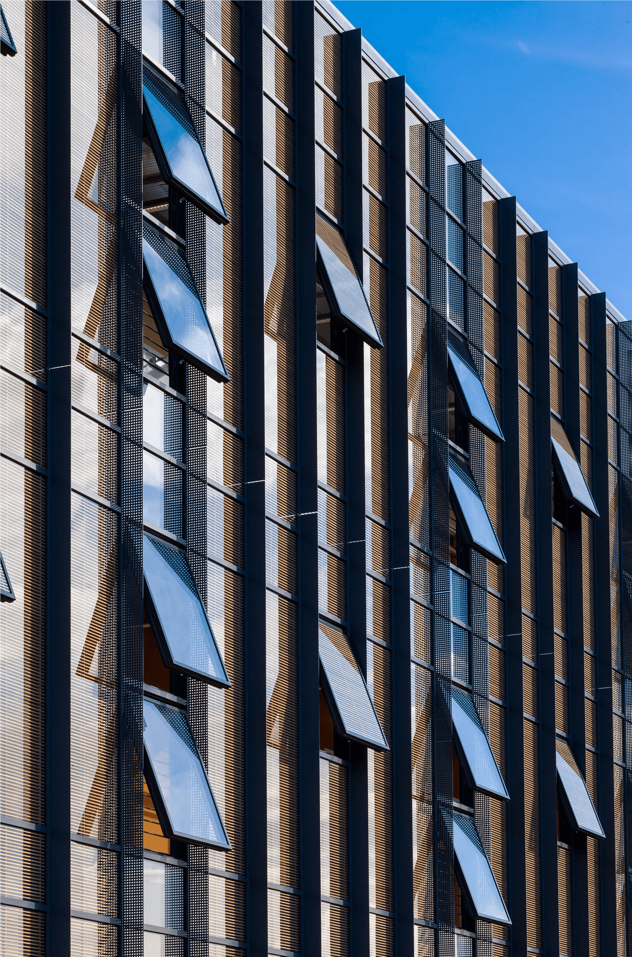 As the University was expanding its core study and learning facilities with this project, the principle design brief was to allow for flexibility of layout to facilitate developing or changing ways of working with multi-functional spaces. The building was constructed with a reinforced concrete precast frame and is clad in curtain walling system (Okawood) to the West and a render system with strip windows to the East, as one of the objectives of the design was to create a transparency or openness to the researchers to facilitate collaboration or incidental learning/sharing of knowledge.