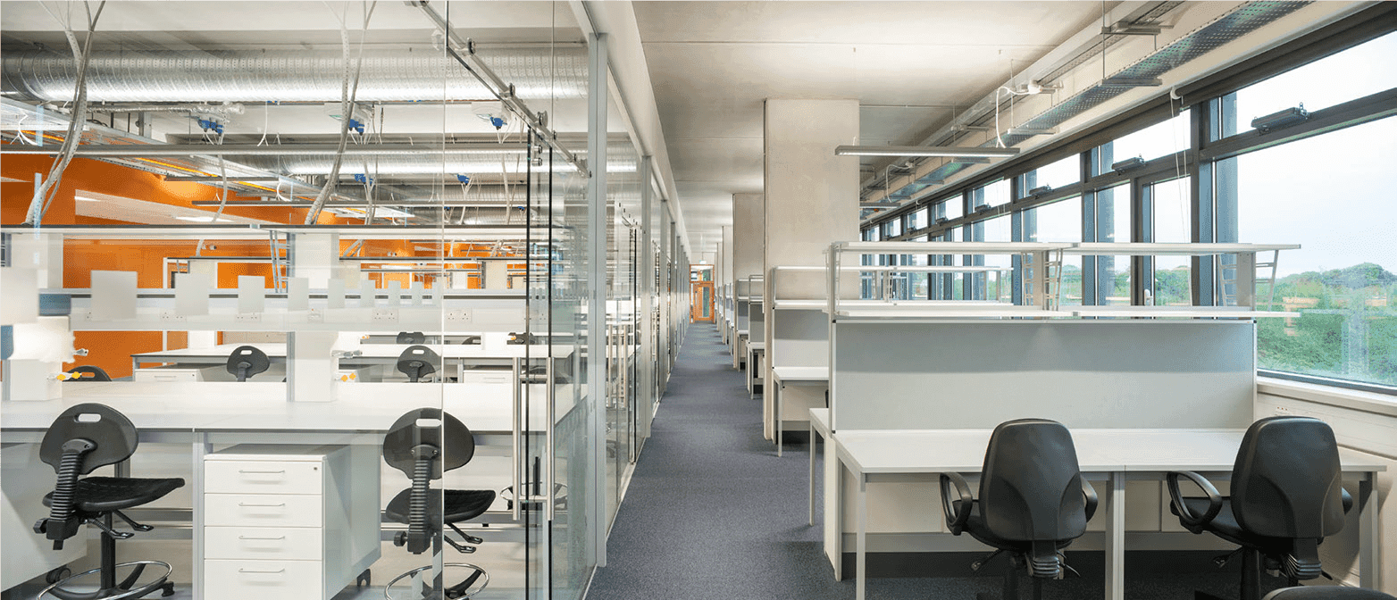 The BSRB was constructed to the highest standards, fully NZEB compliant and a BER A rated building with a Breeam Very Good rating. Façades incorporate an innovative approach to solar shading in the use of Oakwood glazing with integral timber blinds, which provided inherent heat reduction to the naturally ventilated external western corridor. The atrium, office suites, technical work areas and perimeter corridors are all naturally ventilated, acting as a “thermal sweater” for the mechanically ventilated laboratory suites and reinforce an extremely energy efficient design strategy.